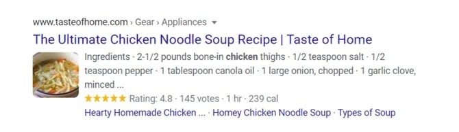 (This SERP listing’s rich snippets help this recipe stand out from other results.)