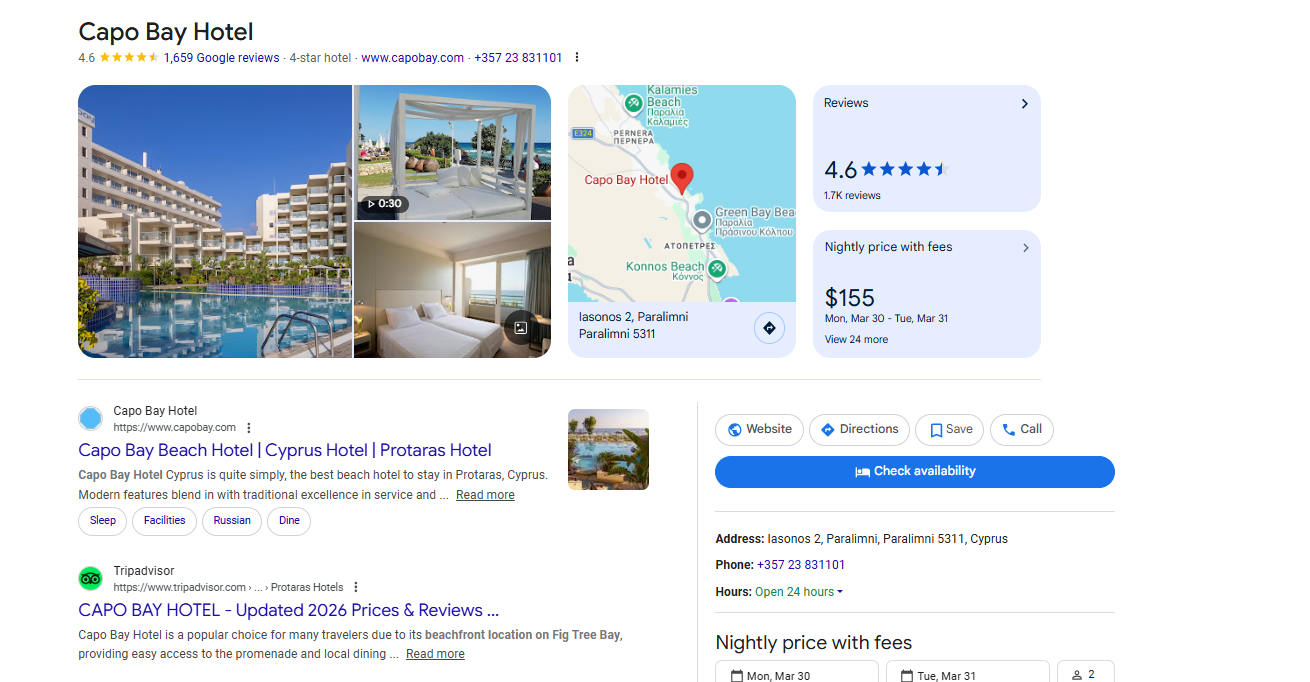 Here’s an example of two companies that both offer bookings at the same hotel. Notice which one takes up more pixel space, and which a user is more likely to click on …