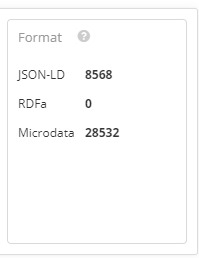 We support all methods for adding structured data (i.e. JSON-LD, Microdata, and RDFa). This summary box shows you how many of each format type were found in the crawl.