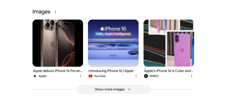 Some search queries clearly indicate that a user is looking for an image; for example, product-related queries (as we saw with the “iPhone 16” example) or keywords with informational intent.