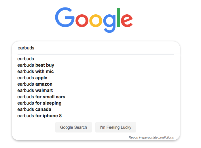 But you know that targeting just the phrase earbuds isn’t enough, and judging by the 75 million results in a quick Google search, you're probably never going to rank for that term alone.