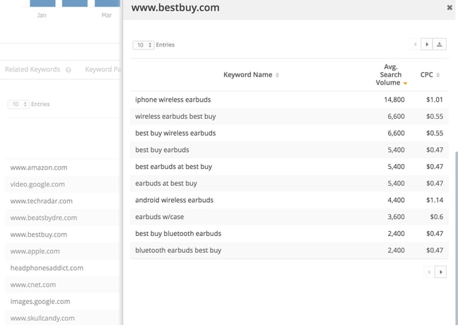 Armed with this understanding, you include other search term types in your SEO strategy as well. For example, you target category-level keywords, too, like: wireless earbuds, noise-canceling earbuds, Apple earbuds, and so on.