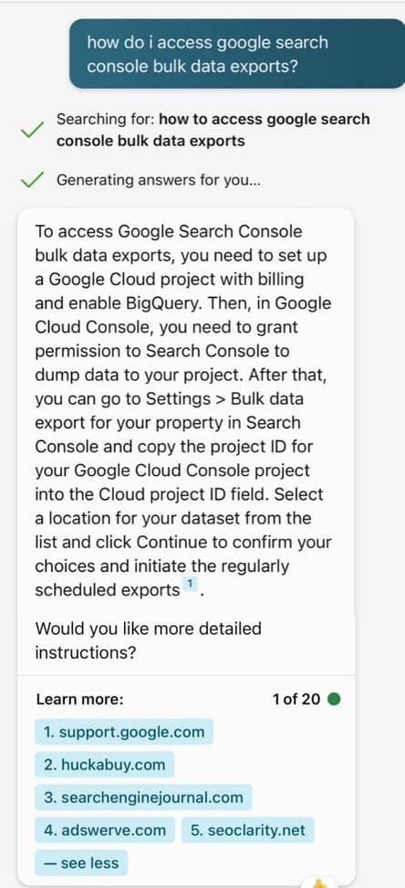 For example, here's the response I got to a query using Bing Chat: