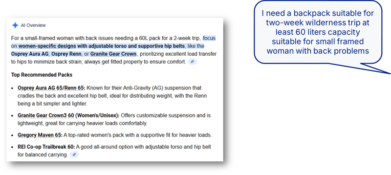 The "Inseam" Example: Before we used to optimize for head terms—my favorite one is "women’s work pants"—and hoped our topic authority would drive the user to land on our site and filter for what they needed. But now, users search with layered intent. I have really tall people in my family, so I’m constantly looking for pants with a 34-inch inseam. You wouldn’t believe how many product pages actually don’t list the inseam, even if the product is a "tall" version!