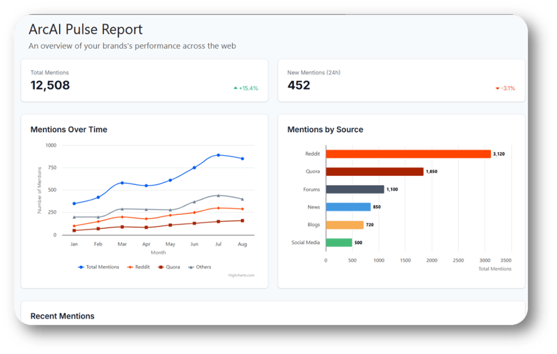 That’s why at seoClarity, we’ve expanded to include Social SEO. Our TikTok research feature keeps you up on latest trends, which is useful for marketing decisions even outside of TikTok. And our AI Search platform, includes Clarity ArcAI Pulse, which reveals where your brand or competitors are being talked about anywhere on the web—forums, news sites, or blogs. Pulse makes sure you know where to involve yourself in the conversation.