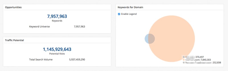 (Quick visual to show your content gap analysis report of two competing domains.)