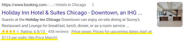 Interestingly, the actual brand - IHG - doesn’t seem to include Schema on its location pages. This results in a less noticeable listing, at least if compared to the example above.