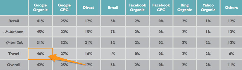 Organic search is also responsible for nearly half of travel brands’ revenues.